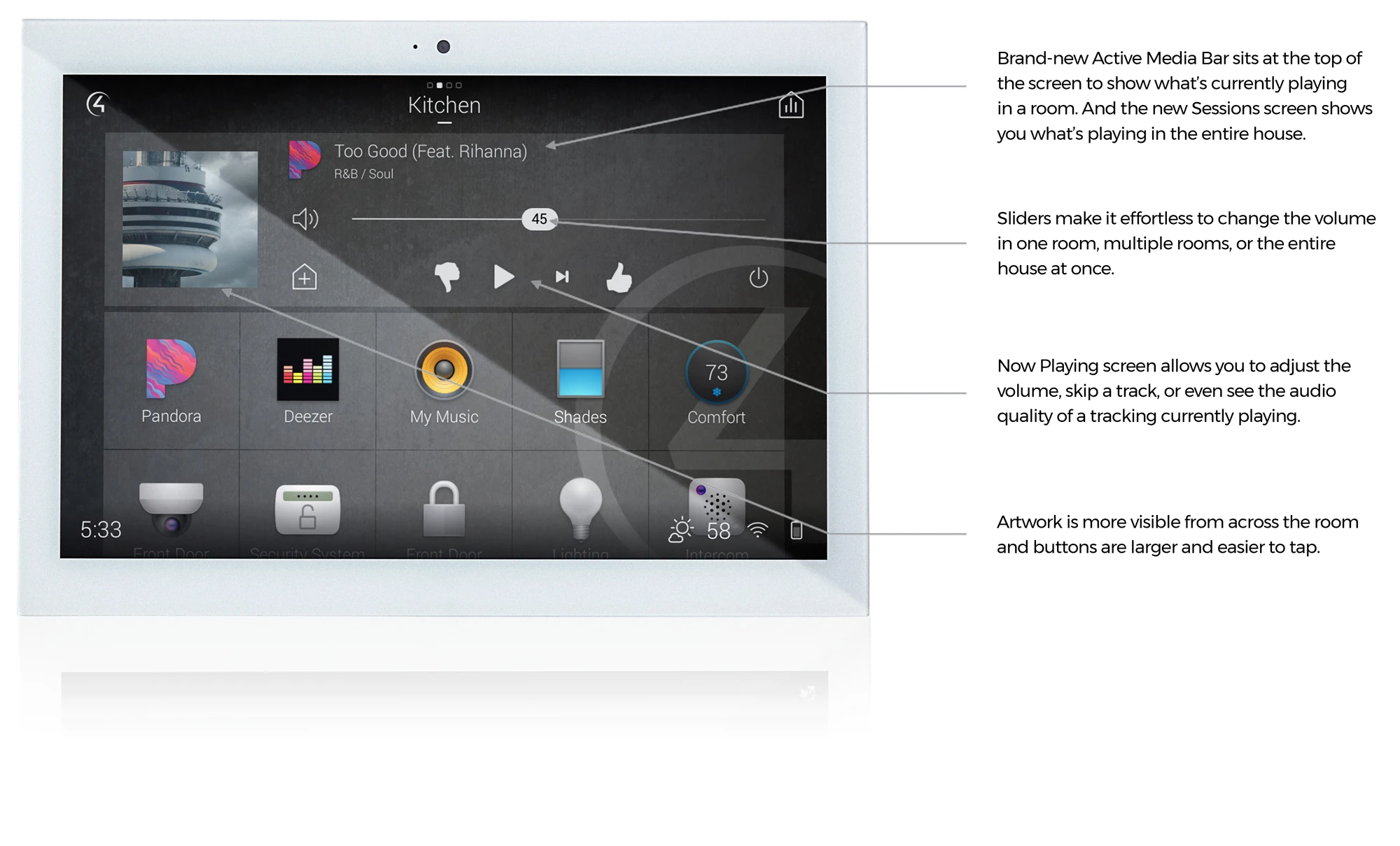 OS 3 is intuitive, providing easy access and control for all devices across your home. See only the lights that are on, music that is currently playing, or glance at the entire home in one place using interfaces and gestures you’re familiar with.